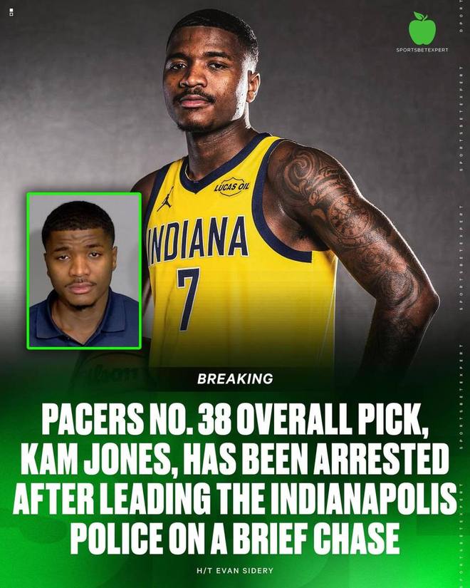 NBA常规赛将于北京时间明天10月21日正式开始。然而,球队的新秀卡姆·琼斯却遇到了麻烦,在与警方的街头追捕后被捕。印第安纳步行者队击败记者阿什顿·哈克曼报道称,步行者队第 38 顺位新秀卡姆·琼斯在印第安纳波利斯 65 号州际公路上短暂追逐后被捕。印第安纳州警方表示,一辆巡逻车试图以“攻击性驾驶”为由阻止琼斯,但琼斯最初没有停车就开走了,引发了警方的短暂追捕,最终他在附近的弗莱彻大道出口被拘留。琼斯目前被关押在马里恩县监狱,初步指控包括鲁莽驾驶和拒捕。步行者队随后发表声明称:“我们已经意识到涉及卡姆·琼斯的情况。我们正在收集信息。” 在今年的选秀中,步行者队在第二轮第38顺位选中了马凯特大学的卡姆·琼斯。根据球探报告,琼斯擅长攻球,脚法出色,对抗身体能力强,进攻手段多样,大学四年传球能力明显提升。他也是一名防守风格顽强的无球射手。